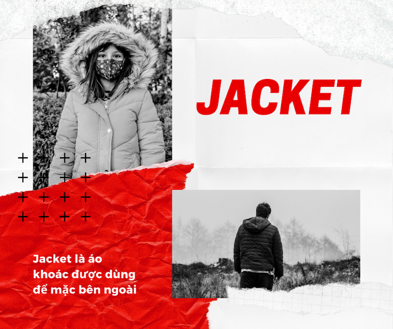 Con thú, jacket chỉ lớp da bên ngoài. Đối với trái cây, jacket cũng chỉ để nói đến lớp vỏ. Như vậy, theo tiếng Anh, jacket được sử dụng chỉ lớp bảo vệ bên ngoài một vật gì đó. Và để chỉ trang phục của con người, jacket là áo được mặc bên ngoài, được gọi chung là áo khoác. Ngoài ra, còn một từ nữa cũng có nghĩa tương tự như áo khoác là “Coat”, vậy Jacket và Coat khác nhau ở điểm này.